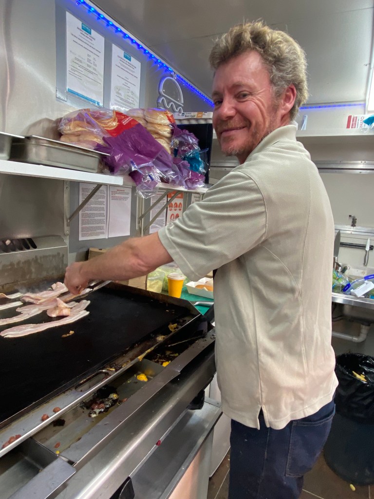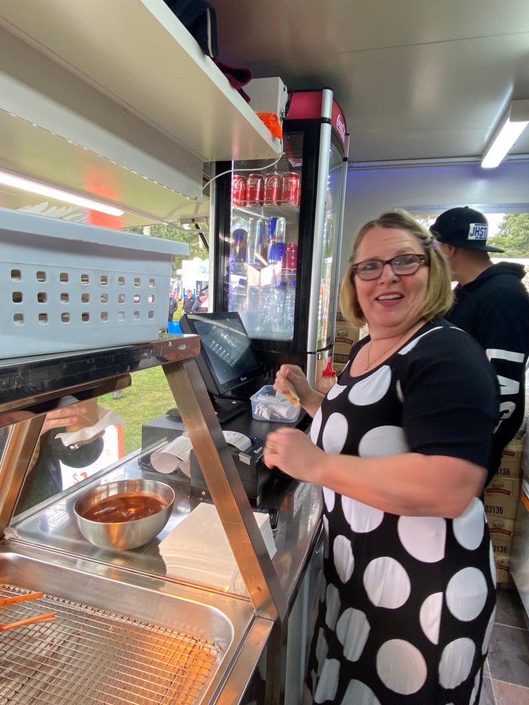Despite a wet start to the day, people came out to Mangakino Lake Hop 5th anniversary to enjoy all the cars, boats and trucks on display. From our side, we decided to celebrate the event by customising our menu and adding to the atmosphere by playing old school music, dancing and singing while getting the orders ready for our hungry crowd. Thanks to Jeremy (our fry master) and Michelle (our smiling front of house lady) for being with us, helping and keeping the trailer an happy place.
